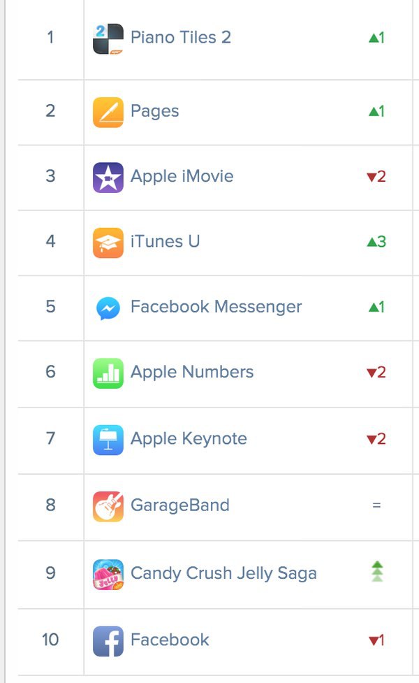 En el segundo mes de 2016 destacan la caída en descargas de las aplicaciones móviles de Apple, aunque igual de llamativo suponía el ascenso en el primer mes. Ahora el procesador de textos Pages desciende dos puestos para situarse en el cuarto lugar del top ten. Mientras que Apple iMovie hace lo propio hacia el quinto lugar en el top de aplicaciones más descargadas. No obstante iTunes U, logra subir dos escalones y mantenerse en la tercera posición de la clasificación.
