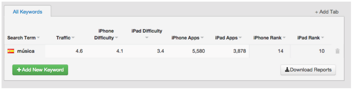 Otro aspecto importante a tener en cuenta es saber cómo de difícil es rankear por una determinada keyword en el top 10 en una escala que va del 0 al 10, siendo 0 un nivel fácil y 10 el nivel más complicado. Existen distintas plataformas que nos ayudan a medir este grado de dificultad. En el caso de iOS, hay que medir por dispositivo móvil (iPhone, iPad, o más recientemente AppleWatch). En el caso de Android hay una única puntuación (independientemente del dispositivo del que se trate).